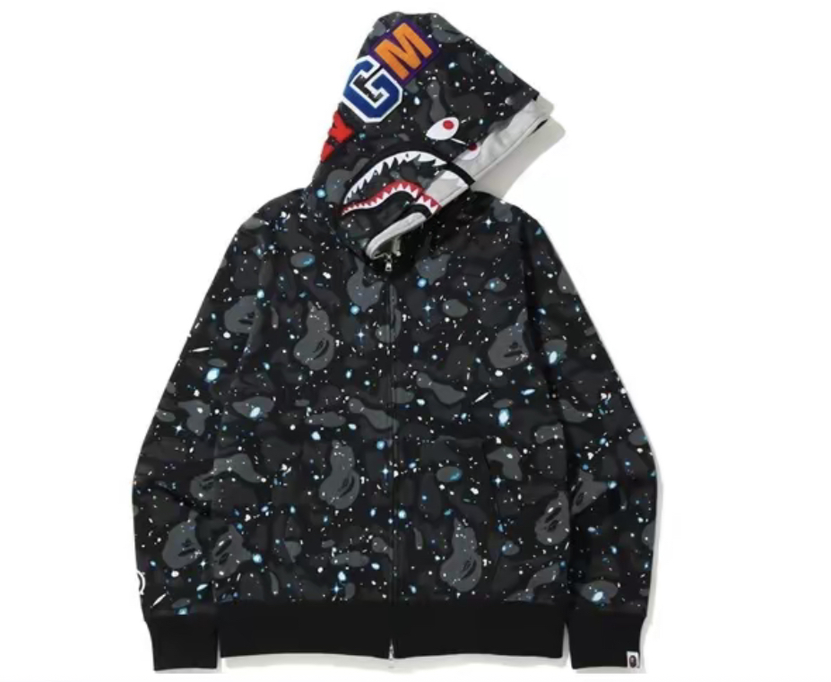 A BATHING APE Space Camo Shark Full Zip Double Hoodie美式復古星空迷彩圖案雙帽拉鍊衛衣夾克 男女同款情侶款